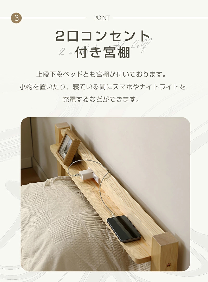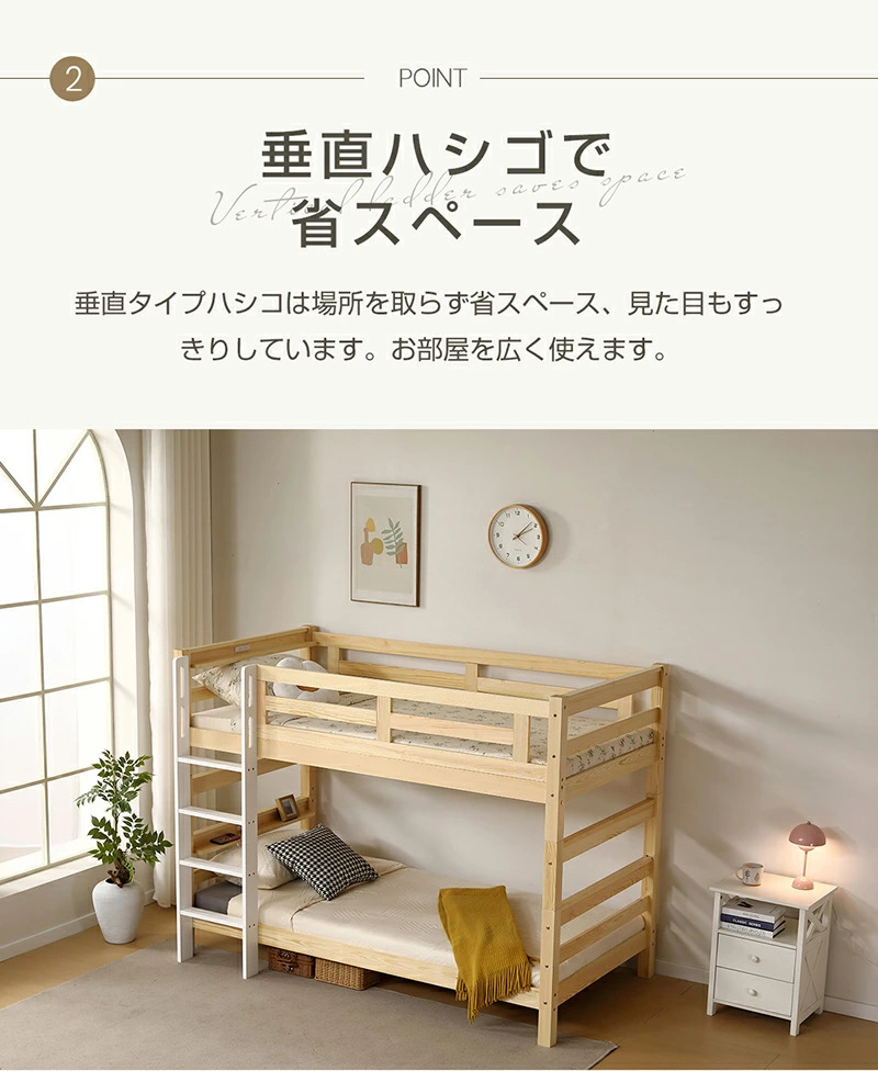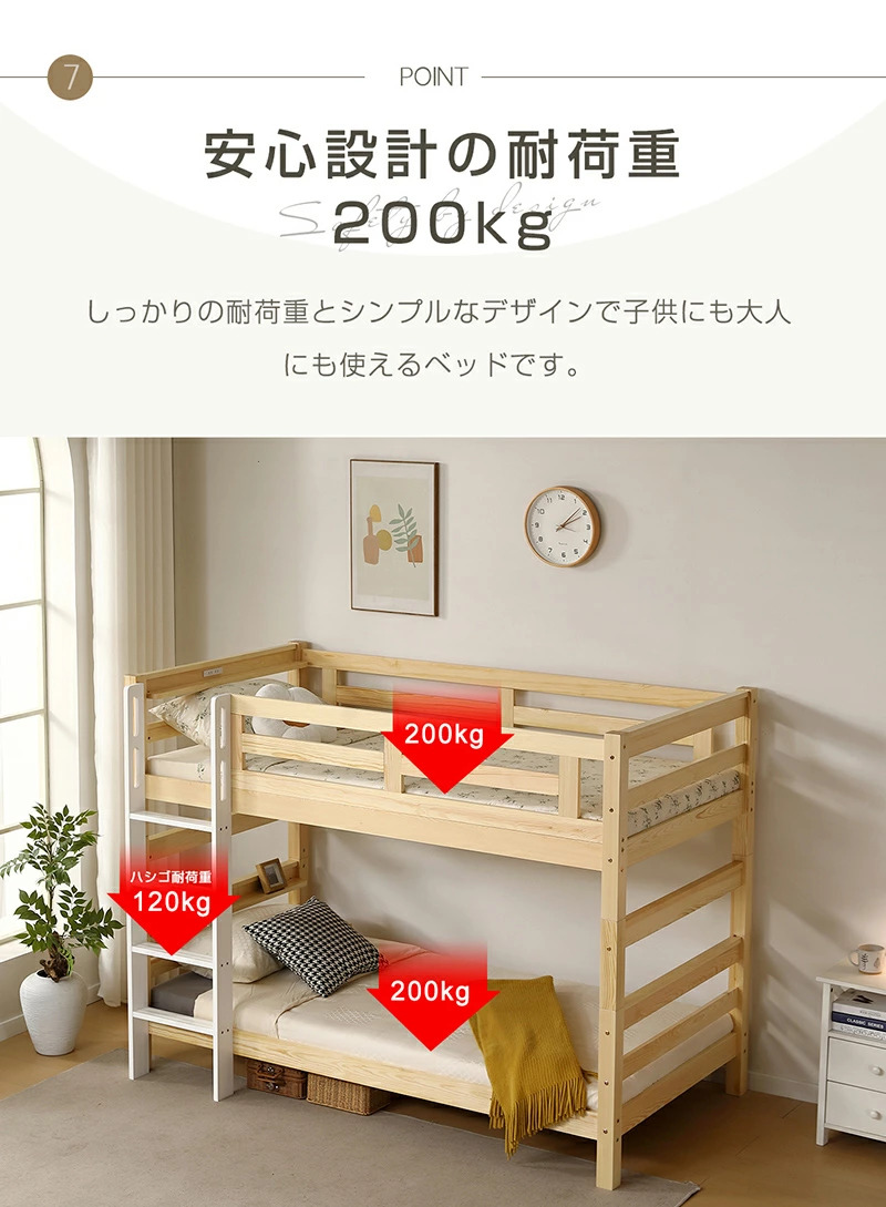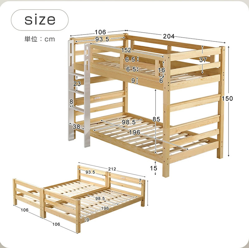 二段ベッド 2段ベッド 分離 シングル すのこ以外オールパイン材 木製 天然木 二段ベッド 分割可能 キングベッド 家族用 大人用 ミドルタイプ シングルベッド 左右組み替え 耐荷重200kg 上下分割可